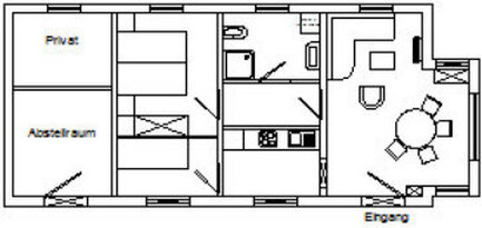 Wohn-Esszimmer:         Tisch und 4 Stühle,